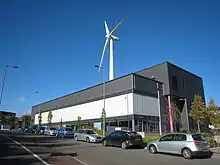 To the east of the main campus lies St George's campus, named after St George's Church (now a lecture theatre and postgraduate residence). The campus is the historical location of the Sheffield Technical School. It is bounded by Upper Hanover Street to the west, Broad Lane to the north, Rockingham Street to the east, and West Street to the south,[52] and is part of St George's Quarter, one of the seven official Sheffield city centre quarters.[65] Also known as the Engineering campus,[66] St George's campus is centred on Mappin Street, the location of the Faculty of Engineering (partly housed in the Grade II-listed Mappin Building) and the Department of Journalism Studies, Department of Economics and Department of Computer Science. The university also maintains the Turner Museum of Glass in this area. As part of the 2000s development plan, the university has converted the listed Victorian Jessop Hospital for Women into the new home of the Department of Music in 2009. The formerly Grade II-listed Edwardian wing of the Jessop Hospital was demolished after Sheffield City Council's planning committee voted for approval.[67] The building was replaced by a new £81 million building for the Faculty of Engineering which opened in September 2015, named the Diamond. It is a purpose-built multi-disciplinary building that houses lecture theatres, laboratories, workrooms and other facilities for the teaching of engineering.[68][69] Amongst the more recent additions to the university's estate located on this campus are the Soundhouse (2008; a music practice and studio facility) and the Jessop West building (2009; the first UK project by Berlin architects Sauerbruch Hutton).[70]