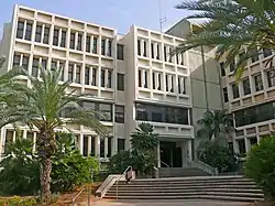 TAU's origins date back to 1956, when three research institutes: the Tel Aviv School of Law and Economics (established in 1935), the Institute of Natural Sciences (established in 1931), and the Academic Institute of Jewish Studies (established in 1954) – joined to form Tel Aviv University. Initially operated by the Tel Aviv municipality, the university was granted autonomy in 1963, and George S. Wise was its first president, from that year until 1971.[8][9] The Ramat Aviv campus, covering an area of 170-acre (0.69 km2), on top of the depopulated and razed Palestinian village of Sheikh Munis, was established that same year. Its succeeding Presidents have been Yuval Ne'eman from 1971 to 1977, Haim Ben-Shahar from 1977 to 1983, Moshe Many from 1983 to 1991, Yoram Dinstein from 1991 to 1999, Itamar Rabinovich from 1999 to 2006, Zvi Galil from 2006 to 2009, Joseph Klafter from 2009 to 2019, and Ariel Porat since 2019.[9]
