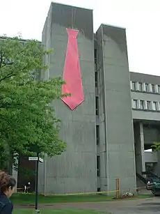 The faculty was founded on January 1, 1967, a successor to the University of Waterloo's Department of Mathematics, which had grown to be the largest department in the Faculty of Arts under the chairmanship of Ralph Stanton (and included such influential professors as W. T. Tutte).[2] Initially located in the Physics building, the faculty was moved in May 1968 into the newly constructed Mathematics and Computing (MC) Building. Inspired by Stanton's famously gaudy ties, the students draped a large pink tie over the MC Building on the occasion of its opening, which later became a symbol of the faculty.[3]