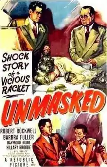 Unmasked is a 1950 American crime film directed by George Blair and starring Robert Rockwell, Barbra Fuller and Raymond Burr.[1]