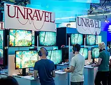 Although developer Coldwood's previous works received unfavorable critical reception, Unravel reportedly showed enough promise for EA's DICE to arrange a publishing deal with EA.[5] Subsequently, Unravel was announced at EA's E3 2015 conference by the game's developer and creative director, Martin Sahlin.[6][8] During the game's presentation, Sahlin was noted to have "reacted to his on-stage appearance like most of us would: with shaking hands and a warbling voice."[9] Sahlin's nervous and excited presentation of Unravel was met with a positive reception from the conference's audience.[10] Following the announcement, Sahlin became the focus of well-circulated appreciative posts and fan art on social media website such as Twitter and Tumblr.[9][11]