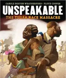 Unspeakable: The Tulsa Race Massacre is a picture book written by Carole Boston Weatherford and illustrated by Floyd Cooper. Published on February 2, 2021, by Carolrhoda, it tells the history behind the Tulsa race massacre in verse.