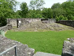 ![]() View of castle ruins and inner ward from current access gate (Tor 2) | |