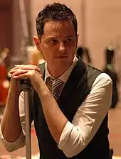 Jason Graves began working on Until Dawn's music in 2011. The scoring process for three orchestra recording sessions lasted for one year.[33] Graves talked with Barney Pratt, the game's audio director, for three hours to get a clear idea about the direction of the soundtrack.[41] He first composed the game's main theme, which he felt represented what the team was trying to achieve, and used it as the demo pitch to Supermassive Games.[42] The music was reactive; it would become louder as the player character approached a threat.[41] While composing for the game, he mixed both melodic and atonal sounds together.[43] The music was influenced by the work of Krzysztof Penderecki and Jerry Goldsmith.[42] There were tonally vague themes to mirror the game's mysterious storyline.[43]