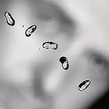 The album cover pictures five water drops in a diagonal line, over a blurred background of Gabriel's face. Each drop contains a refracted image of Gabriel's face.