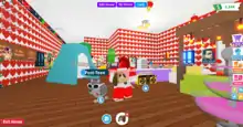 Adopt Me (stylised as ADOPT ME!) is a massively multiplayer online game developed by Uplift Games on the gaming and game development platform Roblox.[2] The original focus of the game was a role-play wherein players pretended to be either a parent adopting a child, or a child getting adopted, but as the game was developed further, its focus shifted to being about adopting and caring for a variety of different virtual pets, which can be traded with other players.[3] Uplift Games, the independent studio behind the game, employs roughly 40 people and earns 60 million dollars a year, mostly from microtransactions.[4][5] The game was averaging 160,000 concurrent players as of September 2022, making it one of the most popular and successful games on Roblox.[6] As of November 2022, Adopt Me! has reached 30.8 billion visits, 25 million + favourites and is still one of the highest games with current users, their record being with the dress your pets update, giving them 1.6M+ concurrent players.