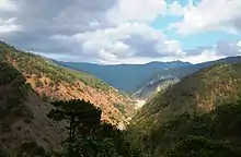The Upper Agno reserve protects the northernmost 45.94 km (28.55 mi) section of the Agno River from the Mount Data National Park in Buguias to Binga Dam in Itogon.[13] It is located to the east and north of the city of Baguio in the southern Cordillera Central mountains and covers the catchment area between the ridges of the Central and Polis ranges. The majority of the reserve is in Benguet shared by the municipalities of Atok, Bokod, Buguias, Itogon, Kabayan, Kibungan, La Trinidad and Tublay. It also has a sizeable area in Ifugao split between the towns of Hungduan and Kiangan and a small part in Nueva Vizcaya in the town of Kayapa.[3]