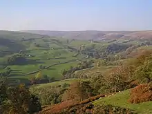Nidderdale, historically also known as Netherdale,[1] is one of the Yorkshire Dales (although outside the Yorkshire Dales National Park)[2] in North Yorkshire, England. It is the upper valley of the River Nidd, which flows south underground and then along the dale, forming several reservoirs including the Gouthwaite Reservoir, before turning east and eventually joining the River Ouse.