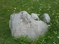 This runestone, listed as U 13 in Rundata, crowns the barrow of Björn Ironside in Uppland, Sweden. The stone is a fragment; broken pieces of the stone lie next to it.