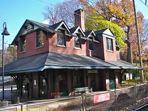 The former station house, which was originally built by the Pennsylvania Railroad, was a café and restaurant in the 2010s.[3] The station is 9.1 track miles from Suburban Station. In 2017 it saw 356 boardings and 305 alightings on an average weekday.