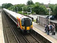 South Western Railway operates one train per hour between Weymouth and London Waterloo. Northbound, this service calls at most stops to Winchester, then Basingstoke, Clapham Junction and London Waterloo.[6]