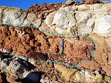 Surficial deposits are broadly defined as Tertiary to Recent near-surface uranium concentrations in sediments or soils.[13] Mineralization in calcrete (calcium and magnesium carbonates) are the largest of the surficial deposits. They are interbedded with Tertiary sand and clay, which are usually cemented by calcium and magnesium carbonates.[11] Surficial deposits also occur in peat bogs, karst caverns and soils.
