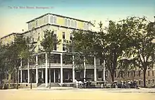After returning from the war, Woodbury settled in Burlington and engaged in the lumber and hotel businesses.[1] For 19 years he was manager of the Booth Lumber Company of Burlington, and for 35 years owner and proprietor of the Van Ness House, a hotel he enlarged twice, enabling it to accommodate 400 guests.[2] At the time of his death he was president of the Mead Manufacturing Company, the Crystal Confectionery Company, and the Queen City Cotton Company.