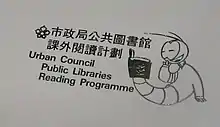 The Urban Council ran numerous public services including public libraries. Shown here is the logo of the Urban Council Public Library Reading Programme, a reading programme in the 1990s which provided gifts as incentives for children to read, based on the number of books they borrowed and read.
