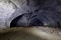In Bosnia and Herzegovina, a large underground facility abandoned since 1992 is Željava Air Base, situated under the Plješevica mountain, near the city of Bihać. It was the largest underground airport and military air base in the SFR Yugoslavia, and one of the largest in Europe. The complex contains tunnels in total length of 3.5 km (2.2 mi), and the bunker with four entrances protected by 100-ton pressurized doors, three of which were customized for use by fixed-wing aircraft. capable in housing two full fighter squadrons, one reconnaissance squadron, and associated maintenance facilities, including an underground water source, power generators, crew quarters, and other strategic military facilities. It also housed a mess hall that could feed 1,000 people simultaneously, along with spaces for storing food, fuel and arms sufficient to last 30 days. It was designed and built to sustain a direct hit from a 20-kiloton nuclear bomb, equivalent to that dropped on Nagasaki. Nowadays, it's popular for urban exploration, although it is risky due to the possibility of anti-personnel landmines being located in unexplored areas, remnants from 1990's Bosnian War.[10][11][12]