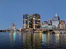 Pyrmont and Ultimo sit adjacent to the Sydney central business district as a mixed-use entertainment, residential and commercial area, former to the industrial precinct that existed prior to the 1980s. From the mid-19th century, the area was home to primary industries and their storage, processing and export facilities. Pymont-Ultimo housed Sydney's first power station, with shipbuilding, steel, wool and flour industries that contributed to the local economy. Colonial Sugar Refinery opened its factories in 1878 and was the last to shut down its Pymont operations in 1992 as the area underwent renewal.[15] During this period of revitalisation throughout the 1990s, local industry closed down and its residents and businesses relocated to the suburbs. According to the census, Pyrmont and Ultimo experienced a population decline from 4,007 residents in 1961, further dropping to 2,598 in 1971, and 1,590 by 1981.[10][15] What was once a vibrant and bustling industrial hub, turned derelict by the mid-1970s, which was voted at the time as the worst place to live in Sydney, along with Zetland.[24] In the early 1990s, under the federal government's Building Better Cities Program, much of the program's $278 million budget was allocated to revitalise the area to a high-density, post-modern development.[15] More than 9,200 dwellings were built, including 16 apartment blocks that formed Jackson's Landing; a high-end development at the northern end of the peninsula. The population in the area had grown to 4,615 in 1996, 14,165 by 2001, and 21,656 according to the 2016 census.[24][25] The renewal of Pyrmont and Ultimo metaphorically represented Sydney's transition from 'old economy' to 'new economy' and reflects Sydney's repositioning as a global city.[10][15] In 2019, a proposal was made to rezone and redevelop Pyrmont and the surrounding Western Harbour Precinct as an area that can generate up to $20 billion in economic growth and 10,000 jobs.[26] This proposal came during a time when Pyrmont was identified as a potential stop in the new Sydney Metro West network.[27]