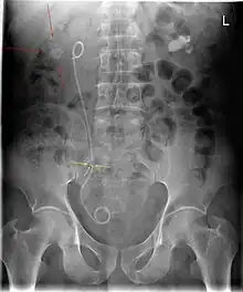 Other complications can include increased urgency and frequency of urination, blood in the urine, leakage of urine, pain in the kidney, bladder, or groin, and pain in the kidneys during, and for a short time after urination.[3] These effects are generally temporary and disappear with the removal of the stent. Drugs used for the treatment of OAB (over active bladder) are sometimes given to reduce or eliminate the increased urgency and frequency of urination caused by the presence of the stent.