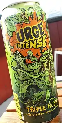 Urge is a citrus flavored soft drink produced by Coca-Cola Norway that was first introduced in the country in 1996, and later on was released in Denmark and Sweden.[2][3] It is the predecessor of the American soft drink Surge, which was introduced in the US in 1997.[4] Urge was discontinued in Denmark and Sweden in 2001.[5] In Norway, Urge sales increased greatly over the years reaching a market share near 10%[6] despite receiving no marketing since its initial launch.