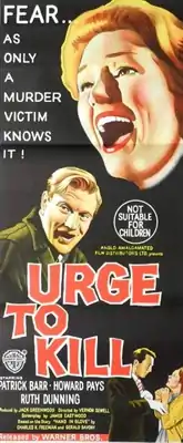 Urge to Kill is a 1960 British B-movie serial killer film directed by Vernon Sewell and starring Patrick Barr, Ruth Dunning and Terence Knapp. The film is based on the 1942 novel Hughie Roddis and 1944 play Hand in Glove, both by Gerald Savory. It is regarded as a minor cult film thanks to its unrelenting shabby grimness and some dated dialogue โ an intellectually disabled suspect is repeatedly referred to as "a mental case", whilst another character, trying to work out why one hapless victim was selected for her grisly fate, speculates "perhaps she was a Jezebel."