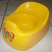 Equipment used for toilet training such as a potty chair will typically include a urine deflector to ensure that the urine does not splash forward and outside the receptacle.[1]