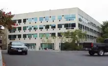 The enabling legislation creating the college also provided funds for a veterinary building at Cornell. The building opened in the fall of 1896, and is now a portion of Ives Hall. A new veterinary complex for Cornell and the college was created in 1957 at the east end of Tower Road. The main building is named Schurman Hall. Today, this complex is the largest veterinary complex in higher education in the United States. (To compensate for the extra distance of the veterinary school from the center of the campus, a sound system was installed to amplify the chimes in Uris Library on that campus. Later, the system was extended to also play in the lobby of the Statler Inn.)[64] In 1974, a 125,460 sq ft (11,656 m2) Vet Research Tower (originally called the "Multicategorical Research Tower") was added with special central facilities to house animals for lab experiments. Its high-rise design by Ulrich Franzen balances Bradfield Hall.[65]