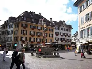 ![]() The Saint Ursus Fountain, Solothurn. Ursus is depicted as a soldier. | |