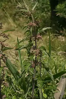 Urtica dioica subsp. galeopsifolia, the fen nettle or stingless nettle, is a herbaceous perennial plant found in Europe. It is considered to be either a subspecies of stinging nettle (Urtica dioica), or a species in its own right: Urtica galeopsifolia.