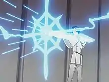 Uryū is a black-haired, bespectacled teenager of average height, generally shy and quiet yet tries harder to act cool around others.[8][9] Uryū comes from the Ishida family, a family of pure blood Quincies though he is impure like his mother. As a child, having lost his mother at a young age, Uryū mostly interacted and trained with his grandfather Sōken before witnessing him being killed by Hollows right in front of him.[10] This is one of the reasons he hates Soul Reapers as they knew of the attack but did nothing to stop it.[11] As a Quincy, Uryū uses the most common power and ability of the Quincy: a bow named Lone Sparrow (弧雀, Kojaku) composed of spiritual energy.[12][13] During the Arrancar arc, Uryū uses a new Quincy cross, and a variant of his original bow called Lone Sparrow on a Silver Cliff (銀嶺弧雀, Ginrei Kojaku). Unlike his original bow, it is shaped like a spiderweb and can fire up to 1,200 shots at once.[14]