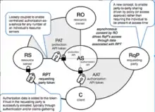 UMA adds three main concepts and corresponding structures and flows. First, it defines a standardized API at the AS, called the protection API, that the RS speaks to; this enables multiple RS’s to communicate with one AS and vice versa, and because the API is itself secured with OAuth, allows for formal trust establishment between each pair. This also allows an AS to present an RO with a centralized user interface. Second, UMA defines a formal notion of a requesting party (RqP) that is autonomous from an RO, enabling party-to-party sharing and delegation of access authorization. An RO need not consent to token issuance at run time but can set policy at an AS, allowing an RqP to attempt access asynchronously. Third, UMA enables access attempts to result in successful issuance of tokens associated with authorization data based on a process of trust elevation in the RqP, for example, gathering identity claims or other claims from them.