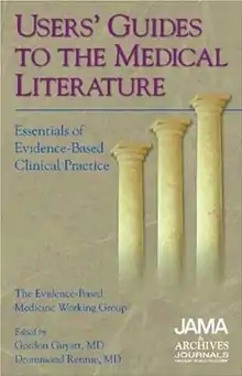 The Users’ Guides to the Medical Literature is a series of articles originally published in the Journal of the American Medical Association,[1] later rewritten and compiled in a textbook, now in its third edition.[2][3] The guides provide practical, clinician-friendly advice on all aspects of evidence-based medicine.