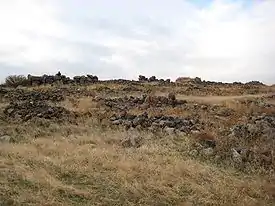 Ushiberd (Armenian: Ուշիբերդ) is an Iron Age fortress located upon a hill just outside the village of Ushi in the Aragatsotn Province of Armenia. It has almost completely collapsed except for portions of the walls that once surrounded the fortress, located around the edge of the hill before it descends. Within the area that was once the interior of the fortress are large piles of large stones that once made up the fortification walls and structures within. Just below the hill is Saint Sargis Monastery of the 7th–13th centuries. It sits at the far side of what was once a settlement site from the 3rd–1st millennia BC. Nearby, down the main road that leads back into Ushi from the monastery and fortress, is a small chapel from the 10th century.