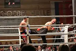 Ushiro-geri is the Japanese term for turning back kick, a kick employed in Karate.[1][2] The kick is a basic move but there are variations of the Ushiro-Geri.