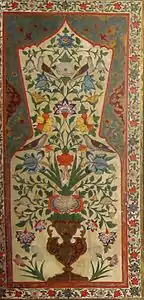 Usta Gambar Karabakhi (Azerbaijani: Usta Qəmbər Qarabağı; 1830s, in Shusha – 1905, in Shusha) was an Azerbaijani ornamentalist painter,[1][2] author of impressive decorative paintings with egg tempera (plant and zoomorphic motifs) in the interior of the Palace of Shaki Khans,[3] in houses of Rustamov, Safi bey and Mehmandarov in Shusha and others.[4][5][6]}