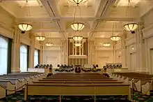 - There is a chapel used for the Sunday services of various downtown wards. The chapel contains a Casavant Frères pipe organ with 2,484 pipes in 45 ranks across two manuals.[11] The organ is characterized by a French accent.[11][12]