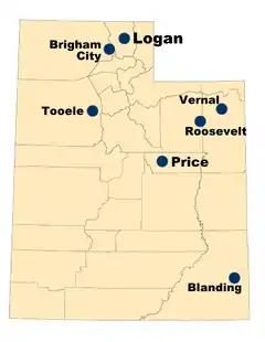Utah State University Tooele is a part of the Utah State University Statewide Campuses located in Tooele, Utah offering a number of Associate, bachelor's and master's degrees as well as certificate programs and a Doctor of Education program. Classes are taught online, face-to-face, and interactive broadcast.[1] USU Tooele has 10 full-time faculty members in addition to the several adjunct professors who collectively teach more than 300 classes. The campus provides academic advising and free tutoring.
