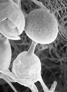 Utharomyces is a fungal genus in the family Pilobolaceae. The genus is monotypic, containing the single coprophilous (dung-loving) species Utharomyces epallocaulus, which is widely distributed in subtropical regions.[1] Utharomyces was circumscribed by the Dutch botanist Karel Bernard Boedijn in 1958.[2] U. epallocaulus has been collected in Bahamas, Ghana, India, Indonesia, Mexico, China, and the United States.[3]
