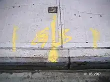 India uses a convention similar to the US, for marking underground utilities such as telephone, gas, water and electricity. The system is based entirely on convention without any written standard. These markings are color-coded, and are painted by contractors onto the pavement.[14]