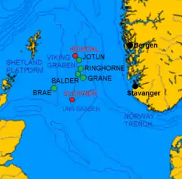 Utsira High (Norwegian: Utsirahøgda) is a basement high and horst in the southwest of the Norwegian continental shelf.[1] It lies east of the Viking Graben and west of the Stord and Egersund basins 190 km west of Stavanger.[2][3] It was on the Balder oil field at the flank of the Utsira High that oil was first discovered in Norway in 1967.[3]