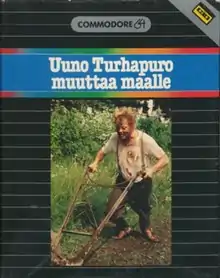 Uuno Turhapuro muuttaa maalle is a side-scrolling video game, available for the Commodore 64.[1] It was developed by the Finnish programmer Pasi Hytönen in 1986 and published by Amersoft, one of the first game publishers in Finland. It is regarded as the first commercially successful Finnish video game, in part due to its subject matter and "near-sadistic difficulty".[2][3]
