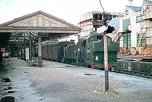The Uxbridge Branch continued to be operated under British Rail until 10 September 1962, when the service from West Drayton was withdrawn and Uxbridge Vine Street station was closed to passengers.[2][3] Goods traffic ceased two years later with the exception of the line south of the Grand Union Canal on which freight services were operated to the Middlesex Oil and Chemical Works in Yiewsley until 8 January 1979. Demolition of Uxbridge Vine Street station occurred in 1969. Hillingdon Road now covers its site.[3]