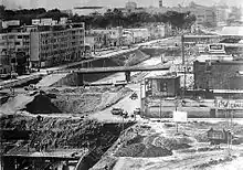 In 1966, then mayor of Lima Luis Bedoya Reyes began the construction of the expressway, an idea by Benjamin Doig. This express road contemplated the construction of an uneven highway (a large "ditch", or zanja in Spanish, for what the members of the Aprista party pejoratively called a zanjón at the beginning due to its poor functionality due to the low number of vehicles, and which later remained as colloquial use) and it is the first express way of the country. However, its level is irregular, so there are areas (such as the one adjacent to the National Stadium where it is at the same height from the ground. Around 1968, the construction of the first stage that included from Plaza Grau to the Av. Javier Prado, ending shortly after where Av. Enrique Canaval y Moreyra is currently. In 1969, the construction of the second stage began and included the remaining section towards the district of Barranco.[3]