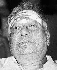 V. K. Ramasamy was born in Amaravilaa, Madras State, now Tamil Nadu on 1 January 1926 to Thangam Chettiar and Angammal.[1] The veteran character actor and comedian, was interested in acting since childhood joined Bala Gana Sabha of Ponnusamy Pillai. Ramasamy shot into prominence when, at the age of 21, he donned the role of a 60-year-old father of grown-up sons in Naam Iruvar (1947), first film of the AVM Films. "VKR" as the actor became known, did not look back since then. However, he always got to play only an elderly person throughout his career, which spanned over five decades in which he acted in over 500 films. In the 1960s and 1970s, Ramasamy acted with almost all leading actors including T. R. Mahalingam, M. G. Ramachandran, Sivaji Ganesan, Gemini Ganesan, Jai Shankar, Ravichandran, Muthuraman, Kamal Haasan and Rajinikanth.