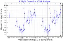 A light curve for V394 Aurigae, plotted from Hipparcos data[5]