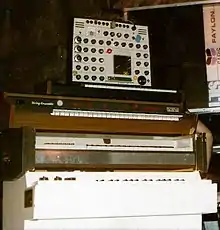 The later Synthi AKS incorporated an early digital 256 event KS (Keyboard Sequencer) sequencer in the lid, with input provided by a capacitance-sensitive Buchla-style keyboard.