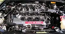 The VE engine is a 3.0 L (2,960 cc) piston V6 engine from Nissan. It is based on the Nissan VG engine and was only used for the 1992, 1993, and 1994 model years. This engine has an iron block, aluminum cylinder heads with 4 valves per cylinder and dual overhead camshafts, variable valve timing on the intake camshafts, coil-on-plug ignition, and an available variable intake manifold (5-speed only). Additionally, the engine has a 10.0:1 compression ratio, a cylinder bore of 87.0 mm, and a piston stroke of 83.0 mm.