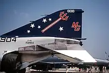 In October 1973. a new paint scheme, consisting of a black dorsal and vertical stabilizer prompted a temporary nickname changed to the "Black Barons". However, the squadron shortly returned to the "Hell's Angels" adding a pitchfork running through the " MG" on the vertical stabilizer.