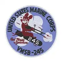 Marine Scout Bombing Squadron 245 (VMSB-245) was a dive bomber squadron in the United States Marine Corps during World War II. The squadron, also known as the “Red Mousie Squadron”, operated from Midway and Makin Atolls, Majuro and Ulithi while overseas. The squadron was decommissioned on November 17, 1945, shortly after the end of the war.