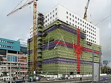 The University's Main Building ('Hoofdgebouw' or HG), established in 1973, is located at the intersection of the Boelelaan and the Buitenveldertselaan. The sixteen-story building is currently undergoing major renovation works.[12] The Main Building is home to the faculties of Arts, Philosophy, Economics and Business, and Theology. The University Library occupies five floors as well as several floors with closed stacks. In addition, the Main Building houses the Aula (main auditorium), the university restaurant, several kiosks, a fair trade store, and the VU bookstore.