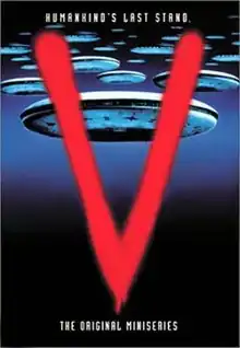 V (or V: The Original Miniseries) is a two-part American science-fiction television miniseries, written and directed by Kenneth Johnson. First shown in 1983, it initiated the science-fiction franchise concerning aliens known as the "Visitors" trying to gain control of Earth, and of the ways the populace reacts.