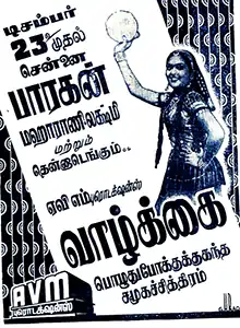 Vaazhkai (transl. Life) is a 1949 Indian Tamil-language social guidance film produced and directed by A. V. Meiyappan through AVM Productions. It stars Vyjayanthimala in her screen debut with M. S. Draupadi, T. R. Ramachandran and S. V. Sahasranamam forms an ensemble cast along with many actors appearing in other significant roles.